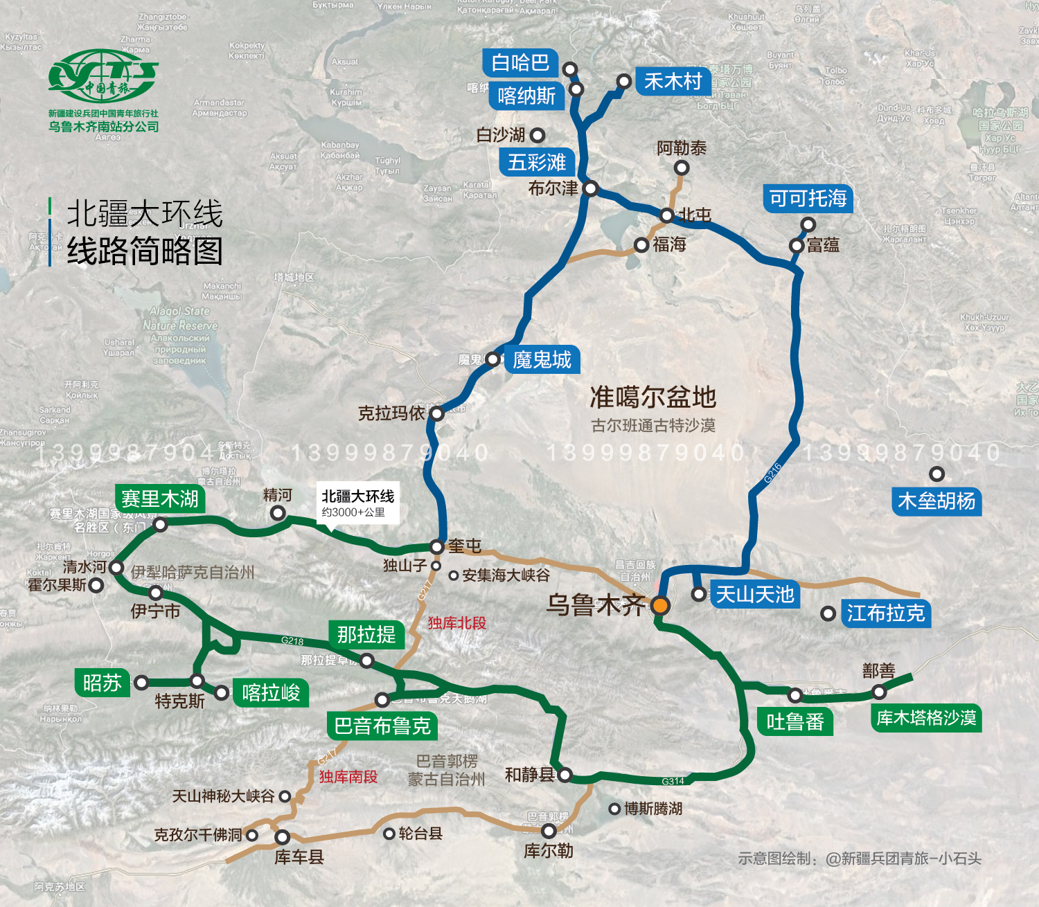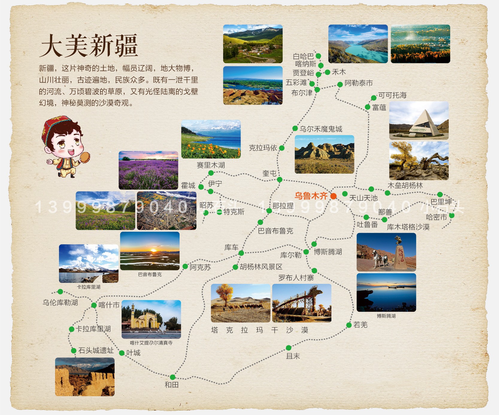 上诉所说到的阿勒泰环线,以及伊犁环线都玩一遍,就完成了整个的北疆环线;乌鲁木齐出发,沿着216国道前往阿勒泰喀纳斯禾木之后,从217下来来到魔鬼城、赛里木湖、昭苏、喀拉峻、那拉提草原等,穿越独库返回乌鲁木齐。北疆地区主要景点(喀纳斯、禾木、赛里木湖、那拉提草原、赛里木湖这几个地方)环线zui@短时间需要7-8天,根据选择的景点不同,行程计划不同,时间可延伸到9-14天,同样的也可以组合乌鲁木齐周边的景点,例如,天山天池、吐鲁番火焰山、坎儿井等;